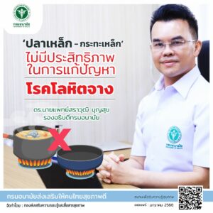 ดร.นายแพทย์สราวุฒิ บุญสุข รองอธิบดีกรมอนามัย กล่าวว่า จากกรณีการส่งต่อข้อมูลบนโลกออนไลน์ เกี่ยวกับปัญหาการขาดธาตุเหล็ก โดยมีข้อมูลงานวิจัยที่ระบุว่าการนำปลาเหล็กลงไปร่วมปรุงประกอบอาหาร เพื่อจะช่วยเพิ่มธาตุเหล็กในอาหารนั้น จากข้อมูลเชิงวิชาการ พบว่า ปลาเหล็กที่ได้รับการเตรียมตามสูตรดังกล่าว (Lucky Iron Fish) สามารถให้ธาตุเหล็กเมื่อต้มในน้ำเดือดได้จริง แต่ผลจากการวิจัย ชี้ให้เห็นว่า การดูดซึมและการที่ร่างกายนำธาตุเหล็กไปใช้ (Iron Bioavailability) น้อยมาก เมื่อเทียบกับการได้รับวิตามินเสริมธาตุเหล็ก Ferrous Sulfate จึงไม่พบการเพิ่มขึ้นของระดับเฟอร์ริติน (Ferritin) ที่เป็นโปรตีนที่จับกับธาตุเหล็กในเม็ดเลือดแดง ซึ่งจะช่วยแก้ปัญหาการขาดธาตุเหล็กหรือโรคโลหิตจางได้ ดังนั้น ปลาเหล็กจึงไม่มีประสิทธิภาพเพียงพอในการป้องกันแก้ไขปัญหาโลหิตจางจากการขาดธาตุเหล็ก นอกจากนี้ ยังพบอีกว่า มีการส่งต่อข้อมูลการขายสินค้ากระทะเหล็ก ที่อวดอ้างสรรพคุณ ว่ามีธาตุเหล็กและช่วยเพิ่มธาตุเหล็กในอาหาร ถือเป็นการโฆษณาเกินจริง เพราะยังไม่มีงานวิจัยใดสามารถยืนยันได้ สาเหตุหลักที่ผู้ปรุงอาหารนิยมนำกระทะเหล็กมาใช้ปรุงประกอบอาหาร เพราะร้อนเร็ว ให้ความร้อนสูง ใช้เวลาในการปรุงอาหารน้อย และยังทำให้อาหารสูญเสียคุณค่าทางโภชนาการน้อยลง แต่ข้อเท็จจริงคือ ความร้อนสูงที่ใช้ ในการปรุง จะทำให้อาหารไขมันสูงบางชนิด ก่อให้เกิดสารเคมีที่ไม่ดีต่อสุขภาพ หากไม่ระวังให้ดี การปรุงอาหารด้วยกระทะเหล็กอาจทำให้อาหารไหม้ได้ง่าย ดังนั้น การปรุงอาหารด้วยกระทะเหล็กจะดีต่อสุขภาพหรือไม่ ขึ้นอยู่กับปัจจัยหลายประการ โดยเฉพาะอาหารหรือวัตถุดิบที่ใช้ ปริมาณ และชนิดของน้ำมันที่ใช้ในการปรุงอาหารอีกด้วย