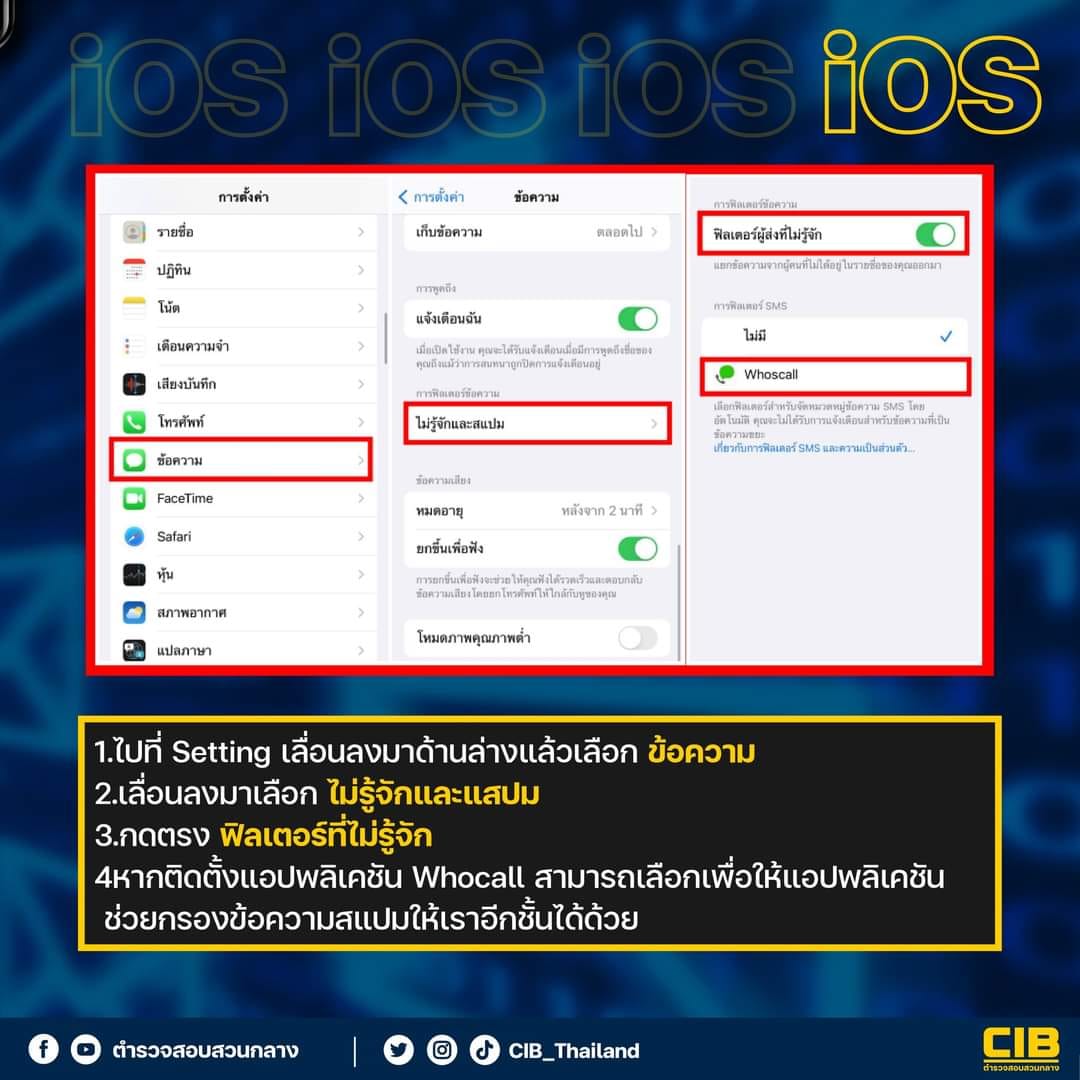 ตำรวจสอบสวนกลาง แนะนำวิธีตั้งค่าโทรศัพท์ เพื่อปิดกั้น SMS หลอกลวงจากมิจฉาชีพชวนเล่นพนันออนไลน์