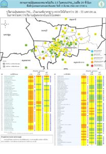 - กรุงเทพมหานครและปริมณฑล เกินค่ามาตรฐาน 1 พื้นที่ ตรวจวัดได้ 28 – 55 มคก./ลบ.ม.