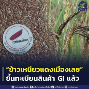 กรมทรัพย์สินทางปัญญา ประกาศขึ้นทะเบียน “ข้าวเหนียวแดงเมืองเลย” เป็นสิ่งบ่งชี้ทางภูมิศาสตร์ (GI) ตัวใหม่ หรือที่เรียกว่า สินค้า GI ข้าวเหนียวแดงเมืองเลยเป็นสินค้าพื้นเมืองของจังหวัดเลย ที่ได้รับรางวัลชนะเลิศ อับดับ 1 จาก 90 สายพันธุ์ของข้าวเหนียวที่มีความหอมที่สุด และรางวัล อับดับ 3 ประเภทข้าวเหนียวที่มีความอร่อย ในงานมหกรรมพันธุ์ข้าวภาคอีสาน