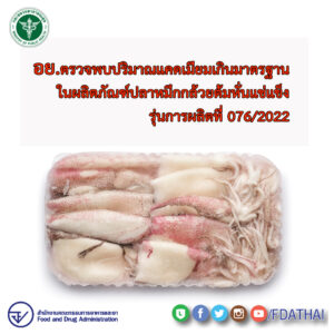 อย. ตรวจพบปริมาณแคดเมียมเกินมาตรฐาน ในผลิตภัณฑ์ปลาหมึกกล้วยต้มหั่นแช่แข็ง รุ่นการผลิตที่ 076/2022