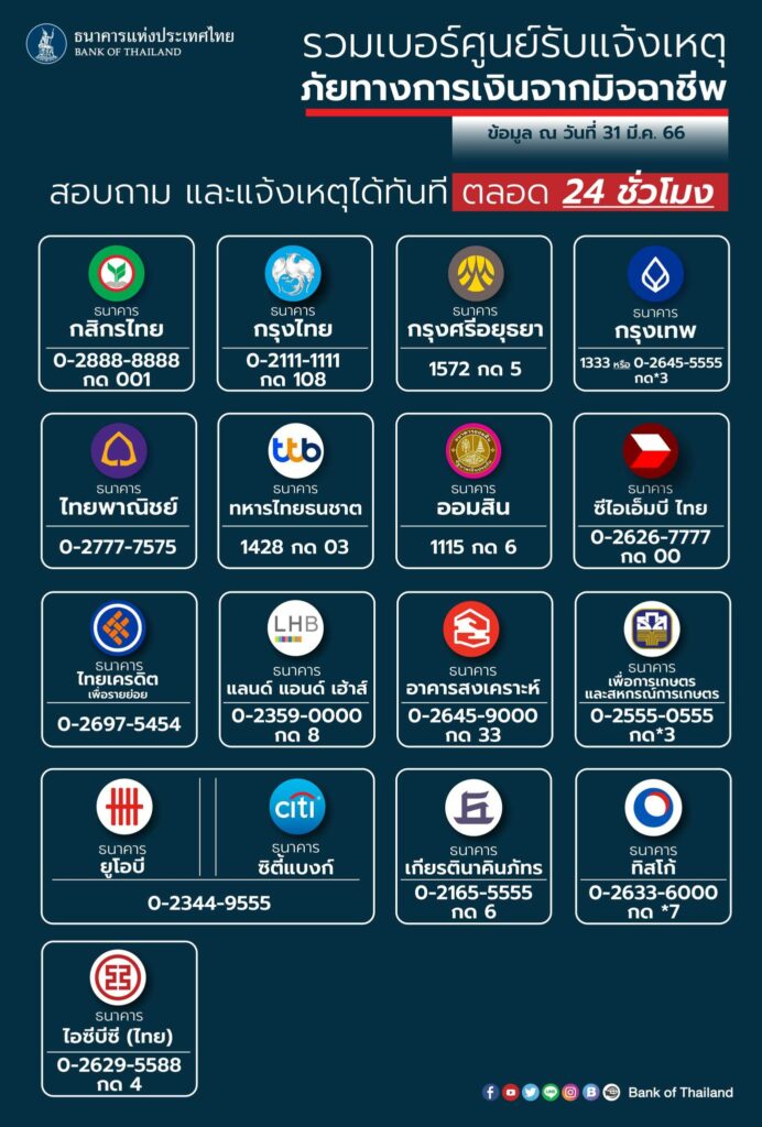รวมเบอร์ศูนย์รับแจ้งเหตุภัยทางการเงินจากมิจฉาชีพ