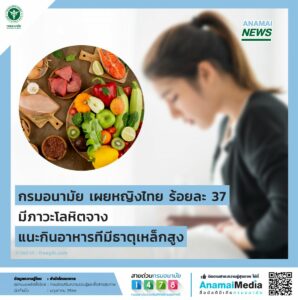 กรมอนามัย เปิดเผยหญิงไทย ร้อยละ 37 มีภาวะโลหิตจาง แนะกินอาหารที่มีธาตุเหล็กสูง