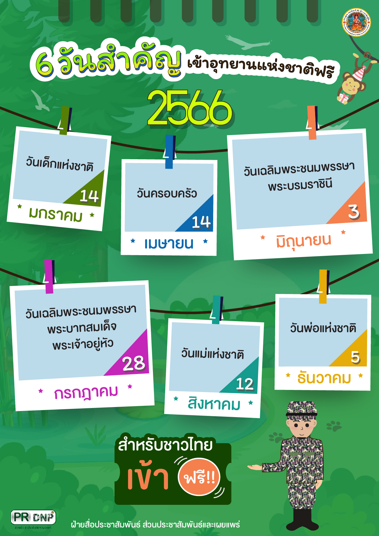 กรมอุทยานแห่งชาติ สัตว์ป่า และพันธุ์พืช แนะนำ 6 วันสำคัญ เปิดให้เข้าอุทยานแห่งชาติฟรี ประจำปี 2566 ข่าวสารกิจกรรม กรมอุทยานแห่งชาติ สัตว์ป่า และพันธุ์พืช แนะนำ 6 วันสำคัญ เปิดให้เข้าอุทยานแห่งชาติฟรี ประจำปี 2566 กรมอุทยานแห่งชาติ สัตว์ป่า และพันธุ์พืช แนะนำ 6 วันสำคัญ เปิดให้เข้าอุทยานแห่งชาติฟรี ประจำปี 2566 กรมอุทยานแห่งชาติ สัตว์ป่า และพันธุ์พืช ยกเว้นค่าเข้าบริการ ค่ายานพาหนะสำหรับบุคคลชาวไทย เนื่องในวันสำคัญ ดังนี้1. วันเด็กแห่งชาติ2. วันครอบครัว3. วันเฉลิมพระชนมพรรษาพระบรมราชินี4. วันเฉลิมพระชนมพรรษาพระบาทสมเด็จพระเจ้าอยู่หัว5. วันแม่แห่งชาติ6. วันพ่อแห่งชาติ ที่มา : https://citly.me/8skgo Post Views: 1,414 FacebookFacebookXTwitterLINELine