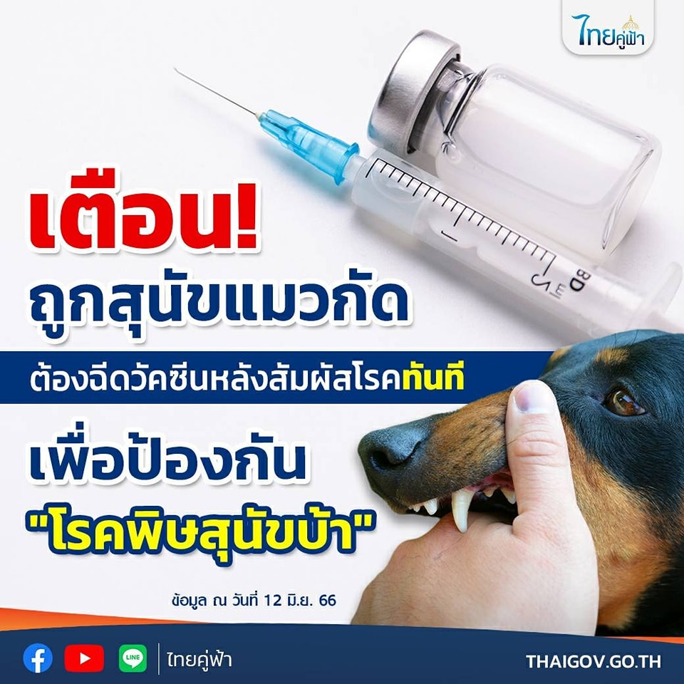 กรมควบคุมโรค เตือนถูกสุนัขแมวกัด ต้องฉีดวัคซีนหลังสัมผัสโรคทันที เพื่อป้องกัน “โรคพิษสุนัขบ้า”