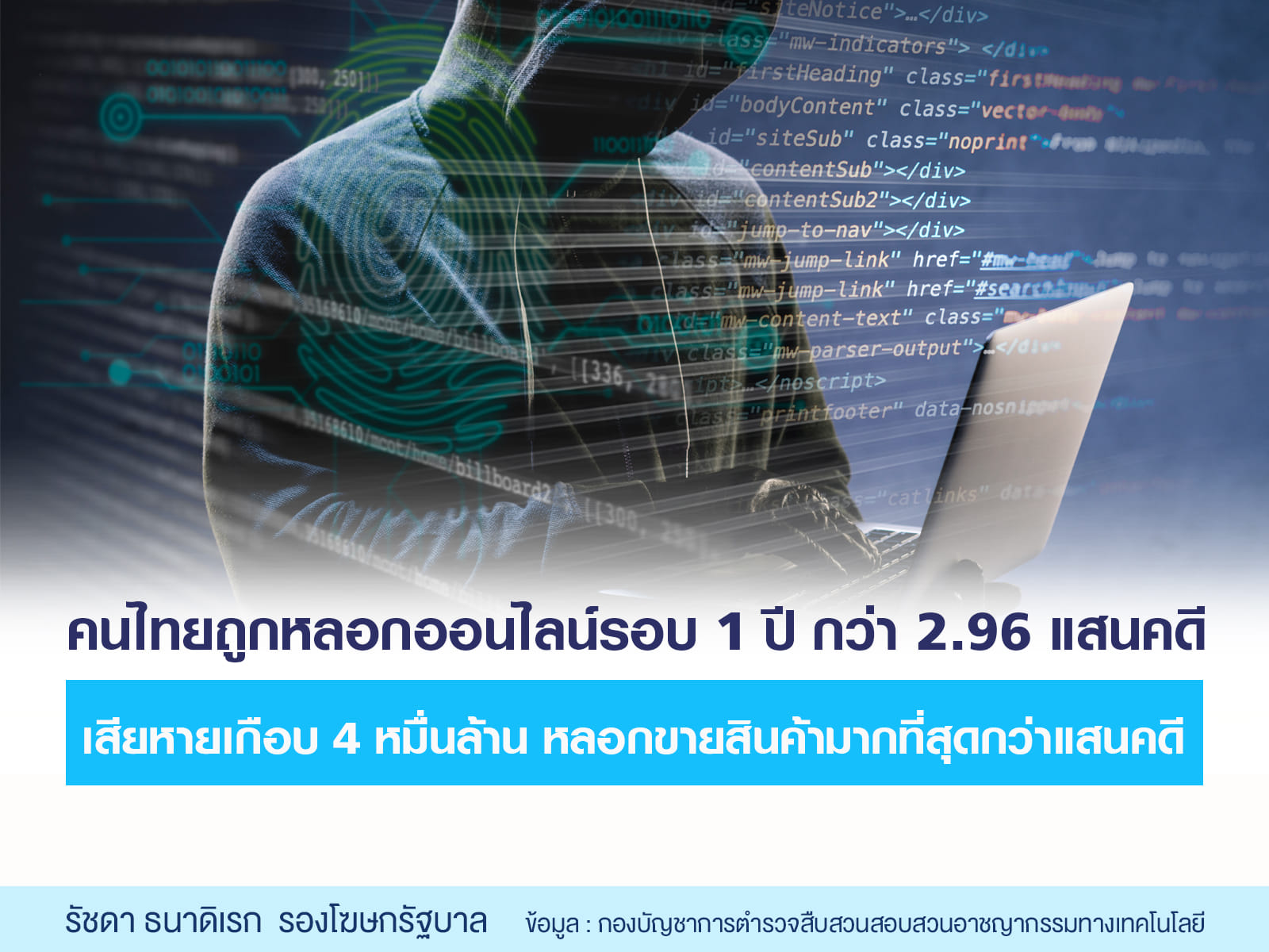 ตำรวจไซเบอร์ เปิดเผยครบ 1 ปี คนไทยถูกหลอกออนไลน์ 2.9 แสนคดี เป็นคดีหลอกขายสินค้ามากที่สุด