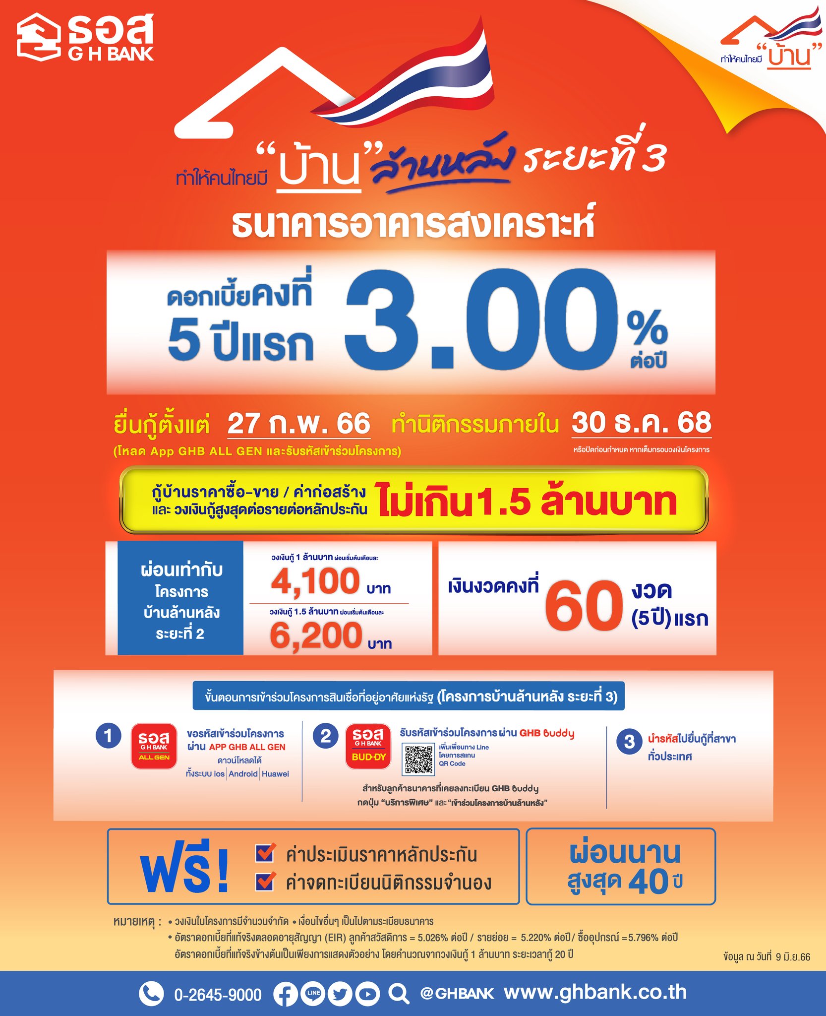 ธนาคารอาคารสงเคราะห์ จัดโครงการบ้านล้านหลัง ระยะที่ 3
