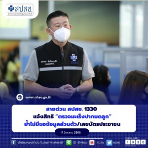 “ขอย้ำว่า ในช่วงการสนทนา เจ้าหน้าที่ฯ จะไม่มีการสอบถามข้อมูลส่วนตัวใดๆ ของท่าน รวมถึงการนำเสนอขายสินค้าหรือบริการ เป็นเพียงการแจ้งข้อมูลสิทธิเท่านั้น อย่างไรก็ตามในกรณีที่ท่านได้รับสายแล้ว รู้สึกไม่มั่นใจว่าเป็นการโทรโดยเจ้าหน้าที่สายด่วน สปสช. 1330 หรือสงสัยว่าอาจเป็นมิจฉาชีพ สามารถติดต่อสอบถามข้อมูลเข้ามาได้ที่ สายด่วน สปสช. 1330 เพื่อให้ตรวจสอบหมายเลขโทรศัพท์ที่ได้รับก่อน” โฆษก สปสช. กล่าว