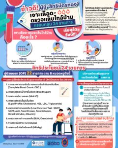 - ทั้ง 2 รายการนี้ ประชาชนตามกลุ่มเป้าหมาย สามารถเข้ารับบริการได้ที่คลินิกเทคนิคการแพทย์ที่ร่วมโครงการได้โดยไม่ต้องมีใบสั่งการตรวจทางห้องปฏิบัติการ