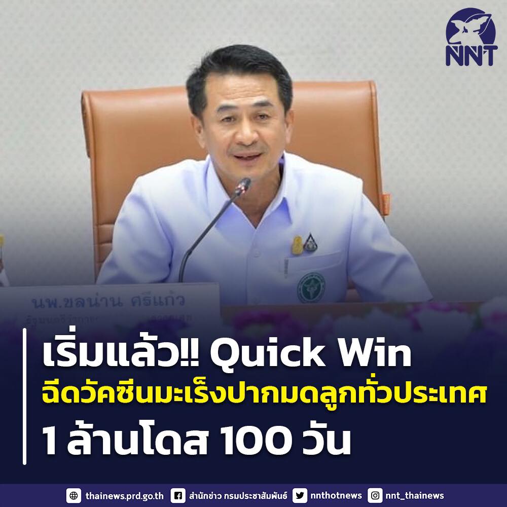 กระทรวงสาธารณสุข เริ่มแล้ว โครงการ Quick Win ฉีดวัคซีนป้องกันมะเร็งปากมดลูก ให้หญิงอายุ 11 – 20 ปี ทั่วประเทศ 1 ล้านโดส ภายใน 100 วัน