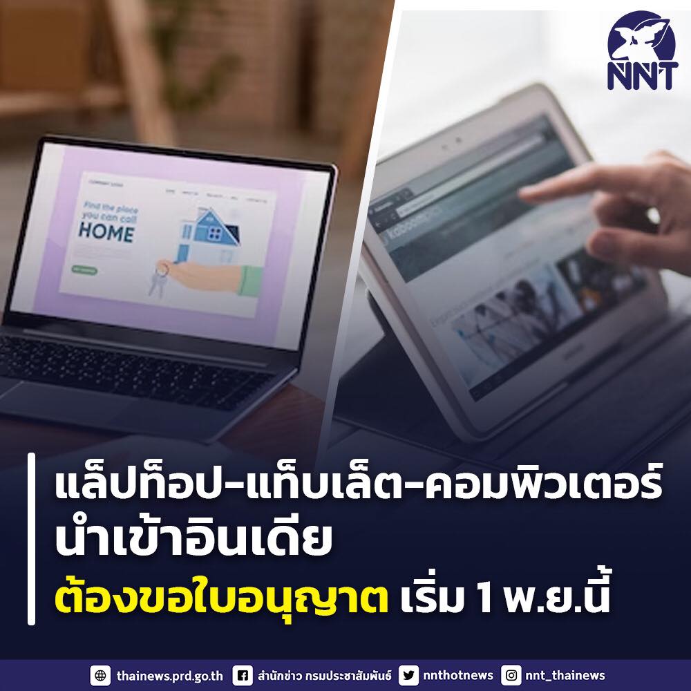 กรมการค้าต่างประเทศ แนะนำผู้ส่งออกสินค้ากลุ่มแล็ปท็อป แท็บเล็ต และคอมพิวเตอร์ ที่จะนำเข้าอินเดีย ต้องขอใบอนุญาต เริ่มตั้งแต่วันที่ 1 พฤศจิกายน 2566 เป็นต้นไป