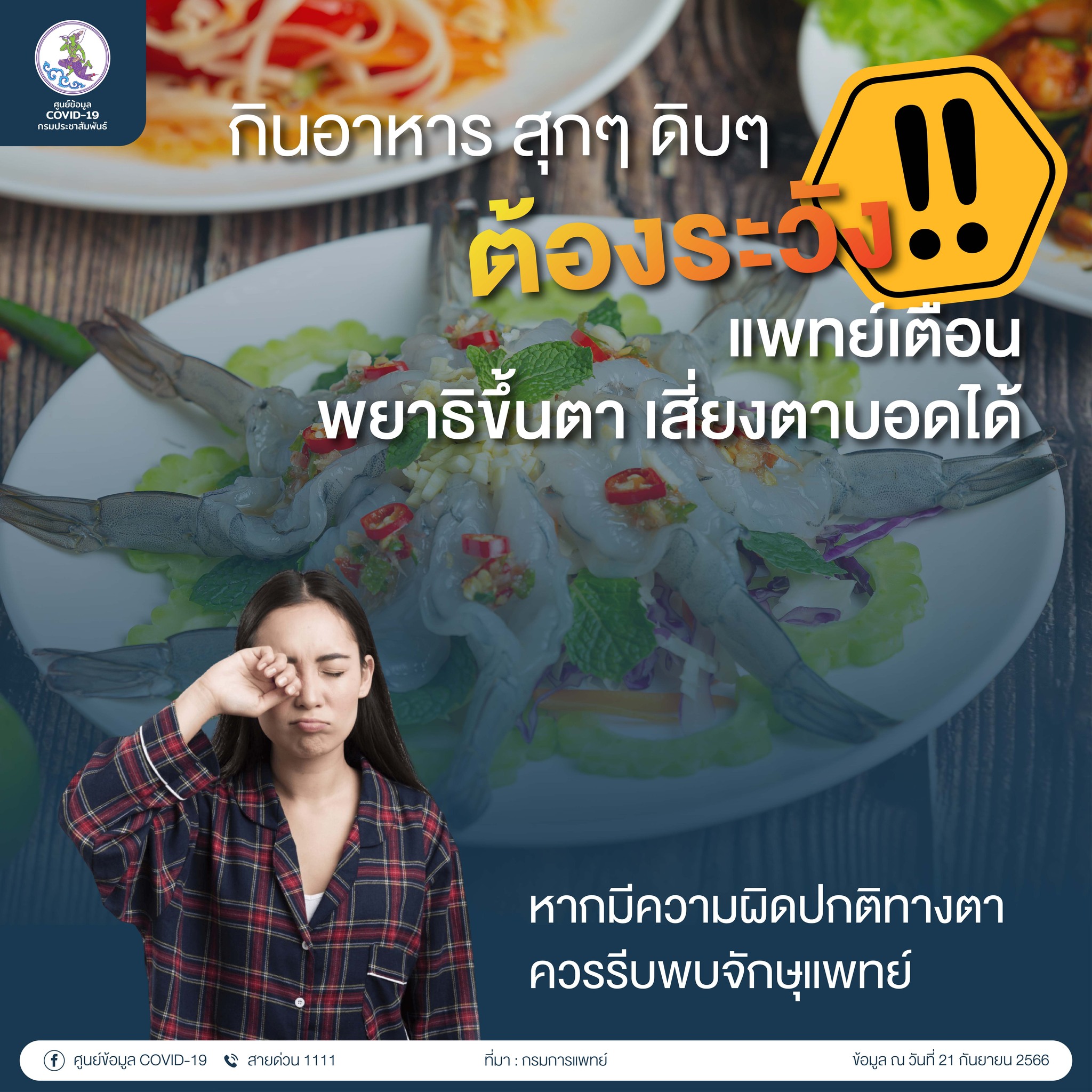 กรมการแพทย์ เตือนกินอาหาร สุกๆ ดิบๆ ต้องระวัง พยาธิขึ้นตา เสี่ยงตาบอดได้ หากมีความผิดปกติทางตาควรรีบพบจักษุแพทย์