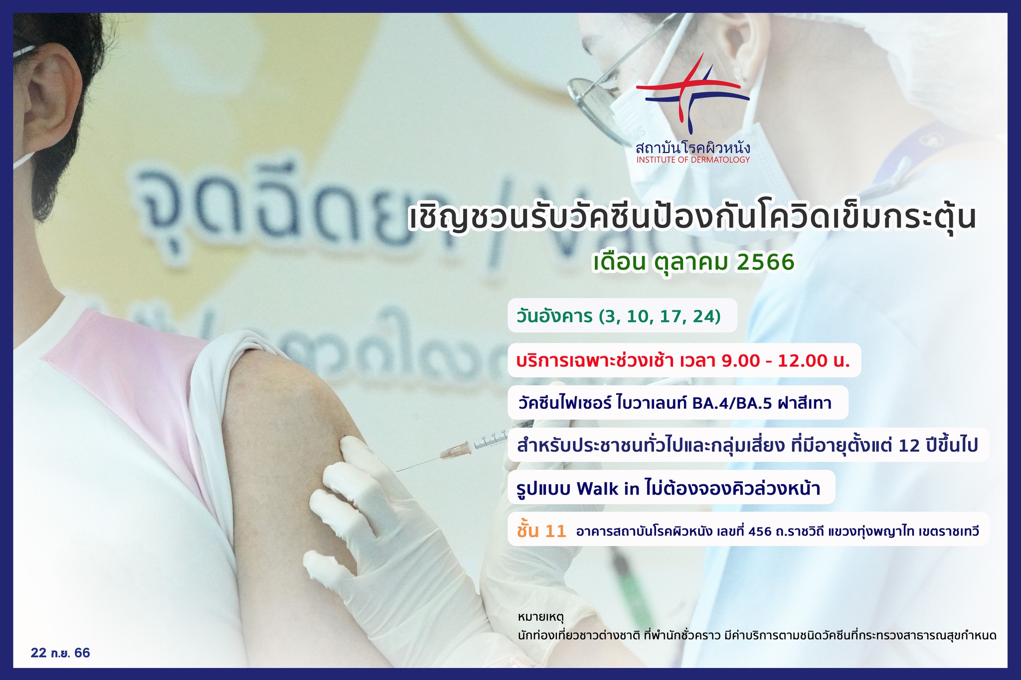 สถาบันโรคผิวหนัง เปิดให้บริการวัคซีนป้องกันโรคโควิดเข็มกระตุ้น ในเดือนตุลาคม 2566