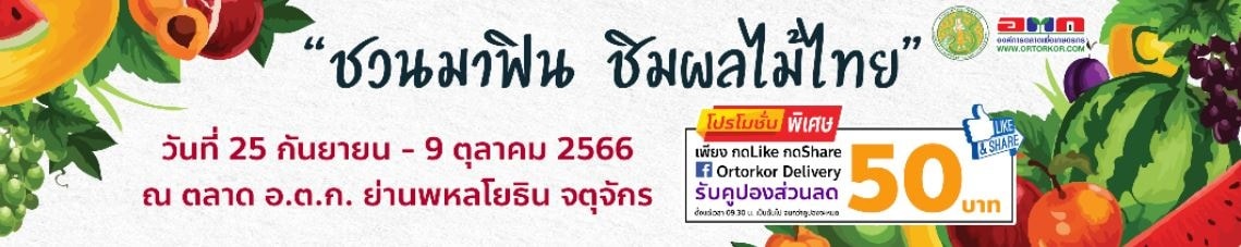 อ.ต.ก. จัดงาน “ชวนมาฟิน ชิมผลไม้ไทย” วันที่ 25 กันยายน – 9 ตุลาคม 2566 ณ ตลาด อ.ต.ก. ย่านพหลโยธิน จตุจักร