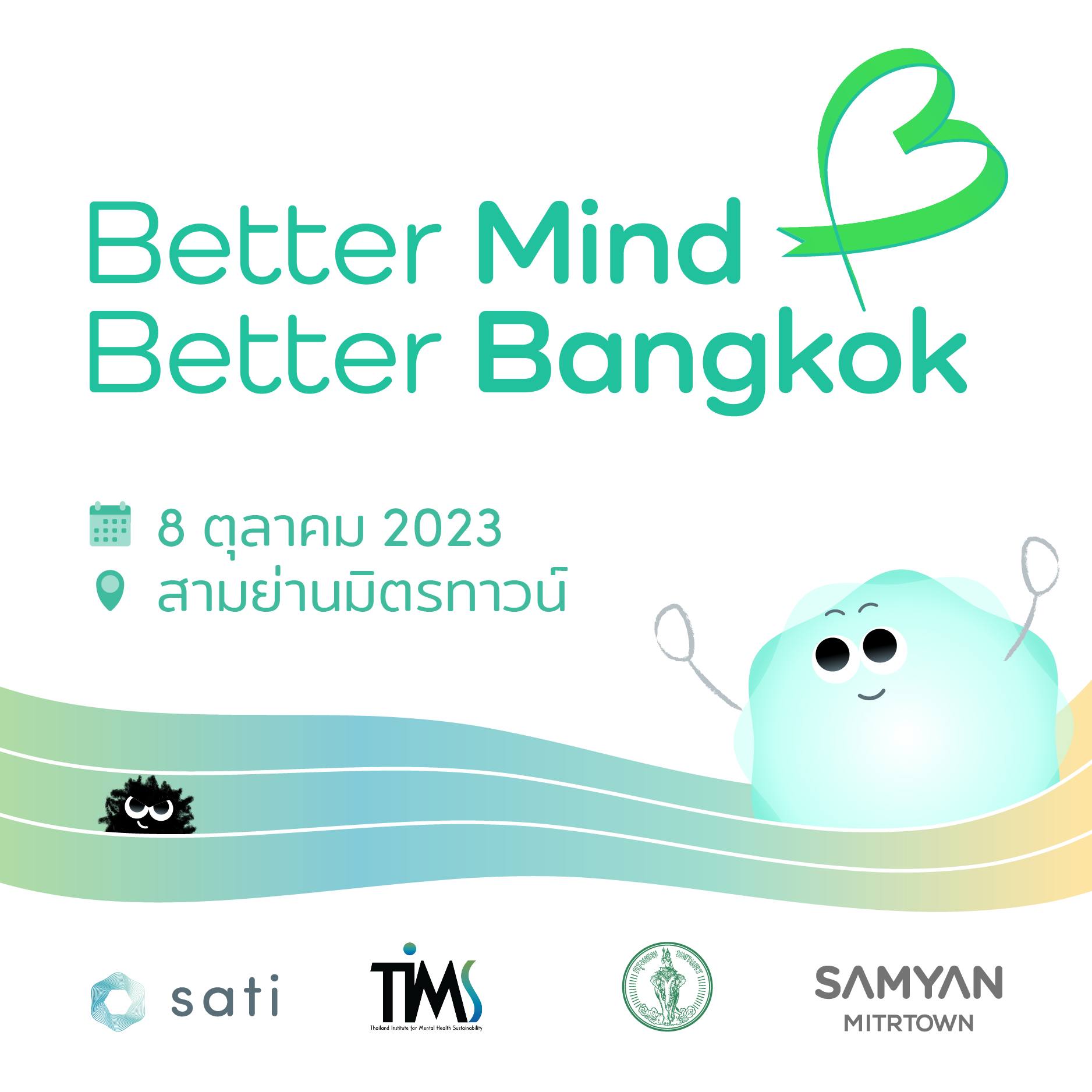 กรุงเทพมหานคร เปิดเผย สำหรับ “วันสุขภาพจิตโลก World Mental Health Day” กรุงเทพมหานคร ร่วมกับ Sati APP และ Thailand Institute for Mental Health Sustainability (TIMS) จัดงาน “Better Mind Better Bangkok” วันที่ 8 ตุลาคม 2023 ณ สามย่าน มิตรทาวน์ มาพร้อมกับวิทยากรมากความสามารถ และกิจกรรมที่น่าสนใจมากมายที่ออกแบบมาเพื่อช่วยเหลือสุขภาพจิตของคุณ