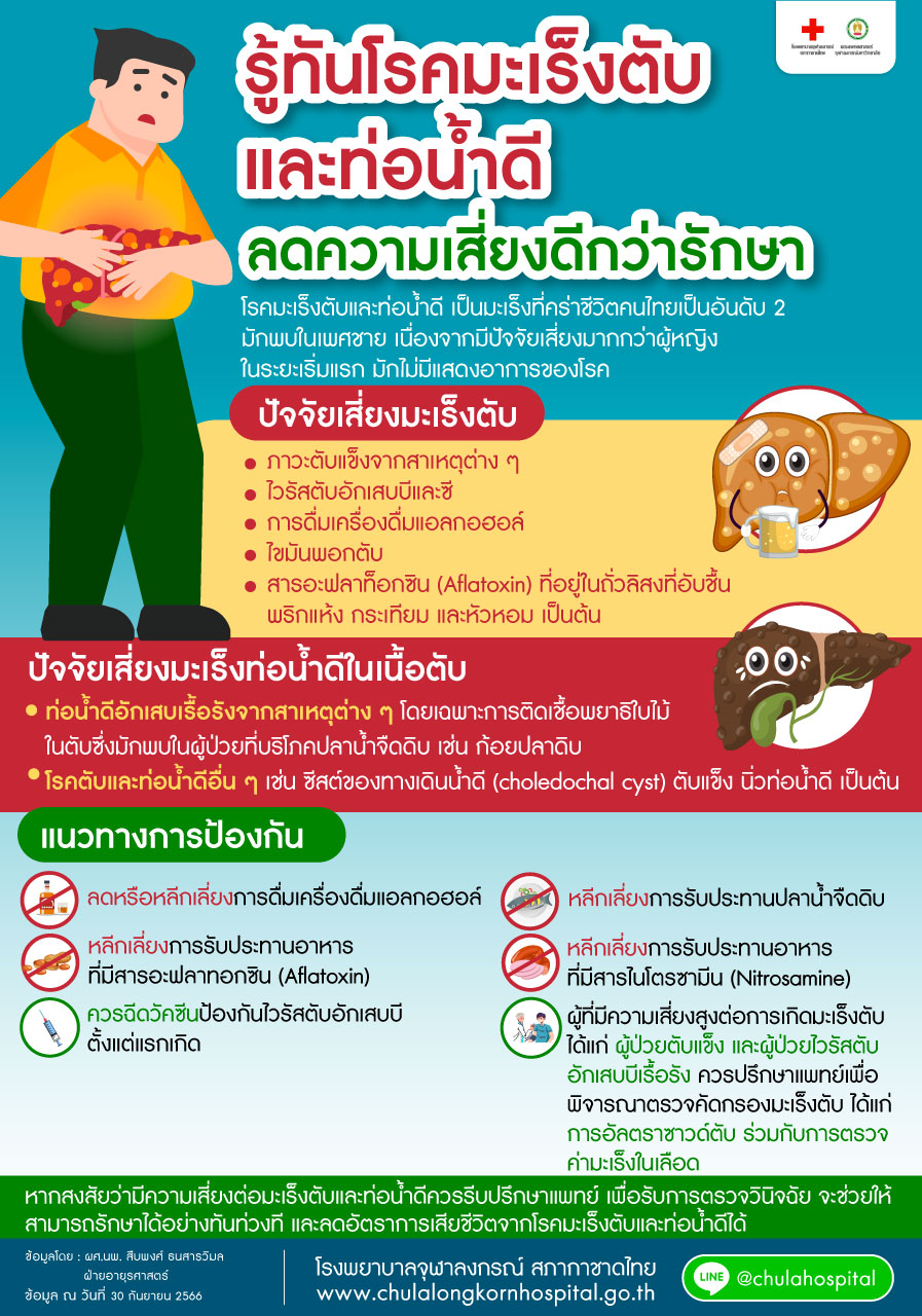 โรงพยาบาลจุฬาลงกรณ์ สภากาชาดไทย เตือนโรคมะเร็งตับและท่อน้ำดี มักพบในเพศชาย ถือเป็นมะเร็งที่คร่าชีวิตคนไทยเป็นอันดับ 2