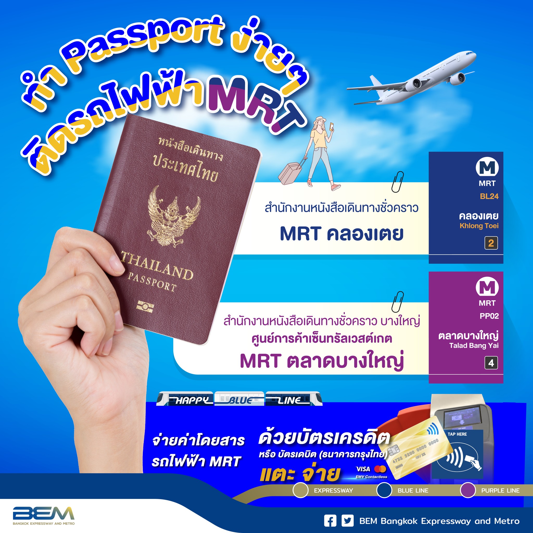 BEM แนะนำทำพาสปอร์ตง่ายๆ ติดรถไฟฟ้า MRT