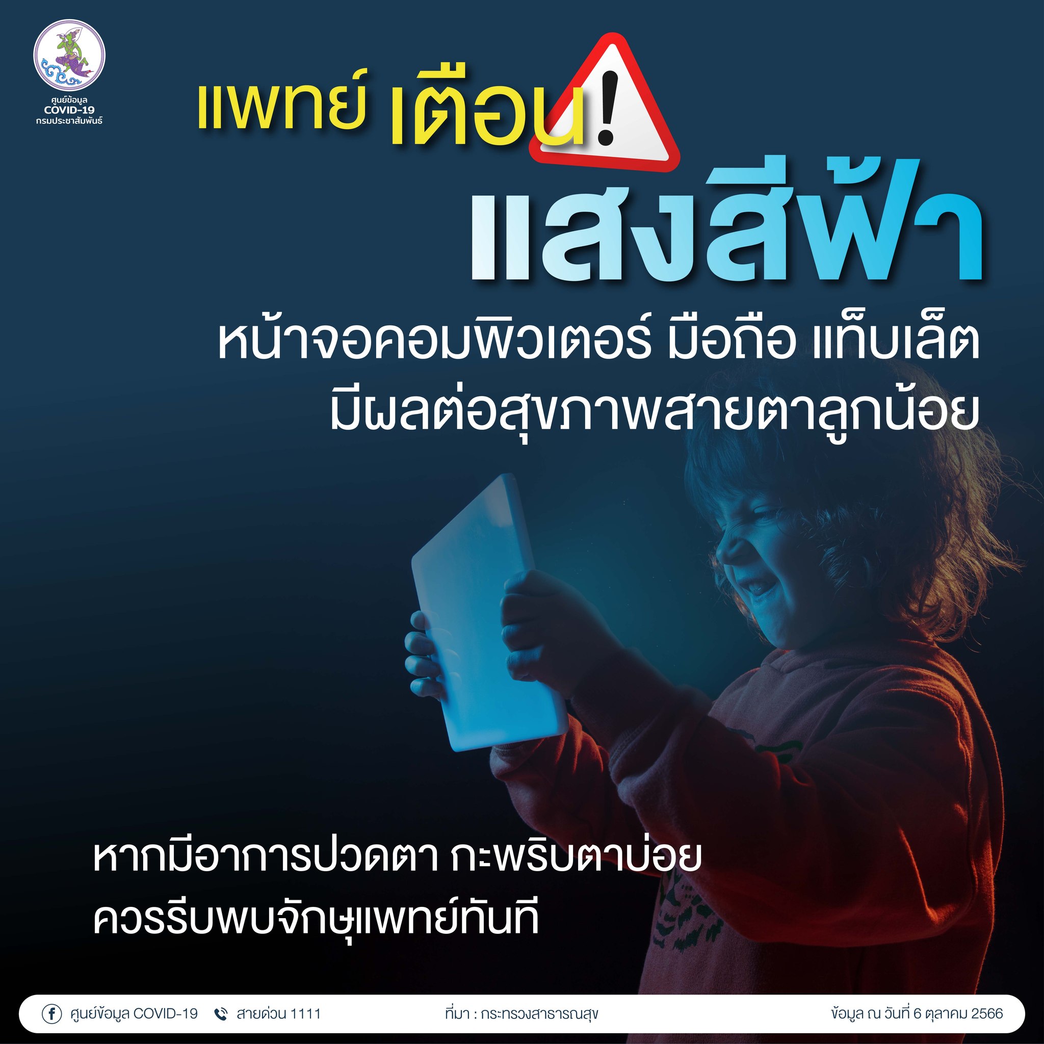 กรมการแพทย์ แจ้งเตือนแสงสีฟ้าหน้าจอคอมพิวเตอร์ มือถือ แท็บเล็ต มีผลต่อสุขภาพสายตาลูกน้อย