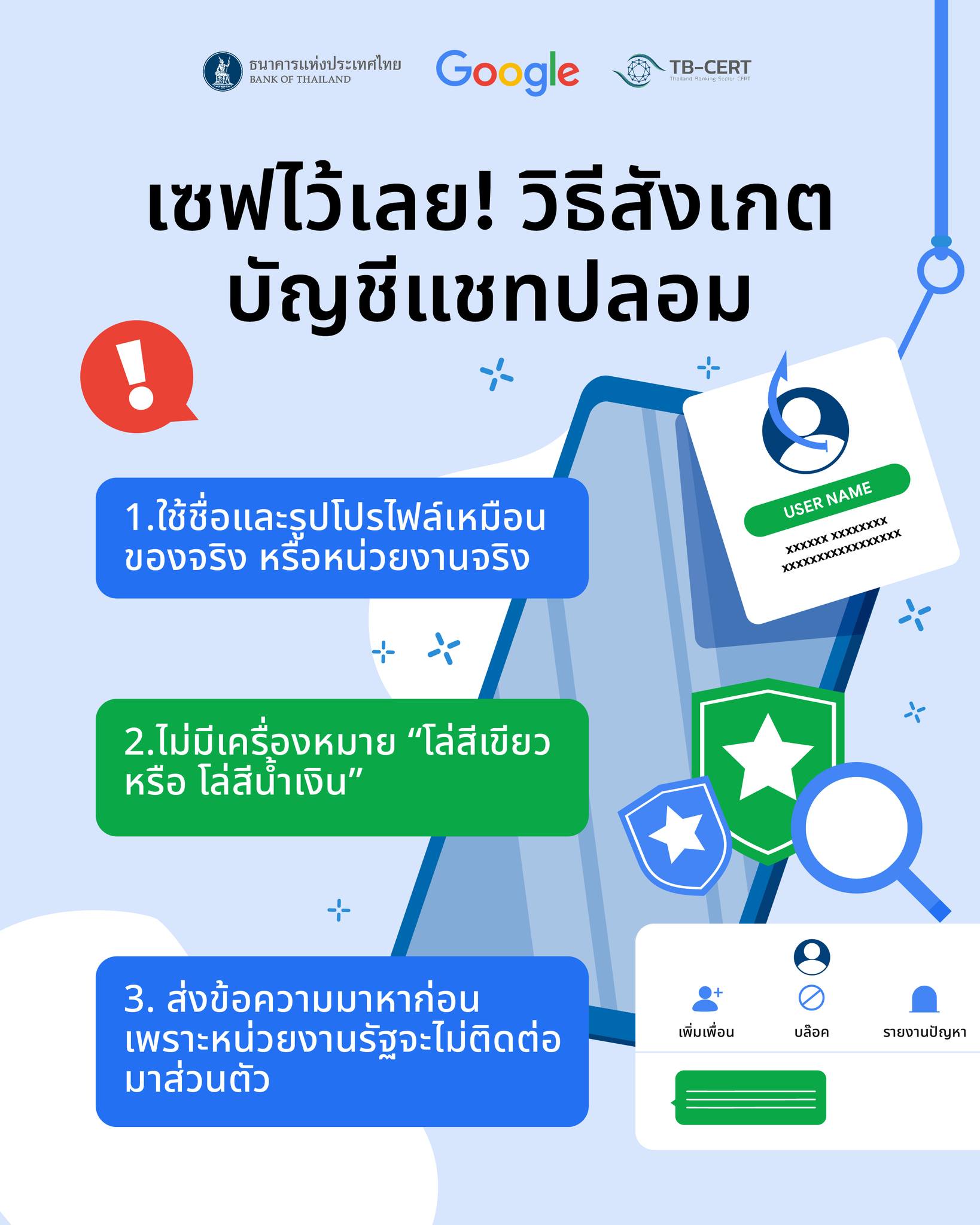 ธนาคารแห่งประเทศไทย แนะนำบัญชีแชทปลอมต้องสังเกตตรงไหนบ้าง