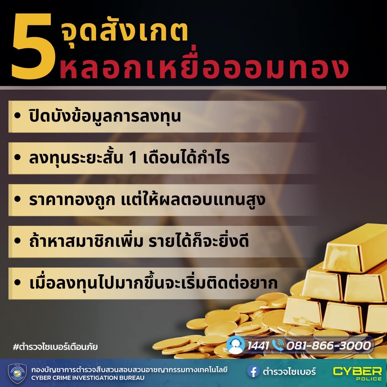 ตำรวจไซเบอร์ เตือนภัย 5 จุดสังเกต หลอกเหยื่อออมทอง