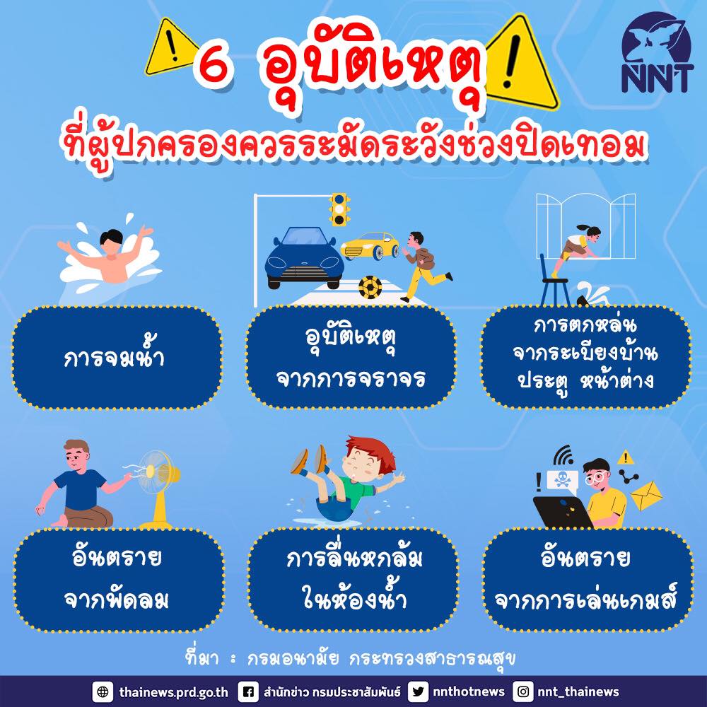 กรมอนามัย แนะนำ 6 อุบัติเหตุ ที่ผู้ปกครองควรระมัดระวังช่วงปิดเทอม