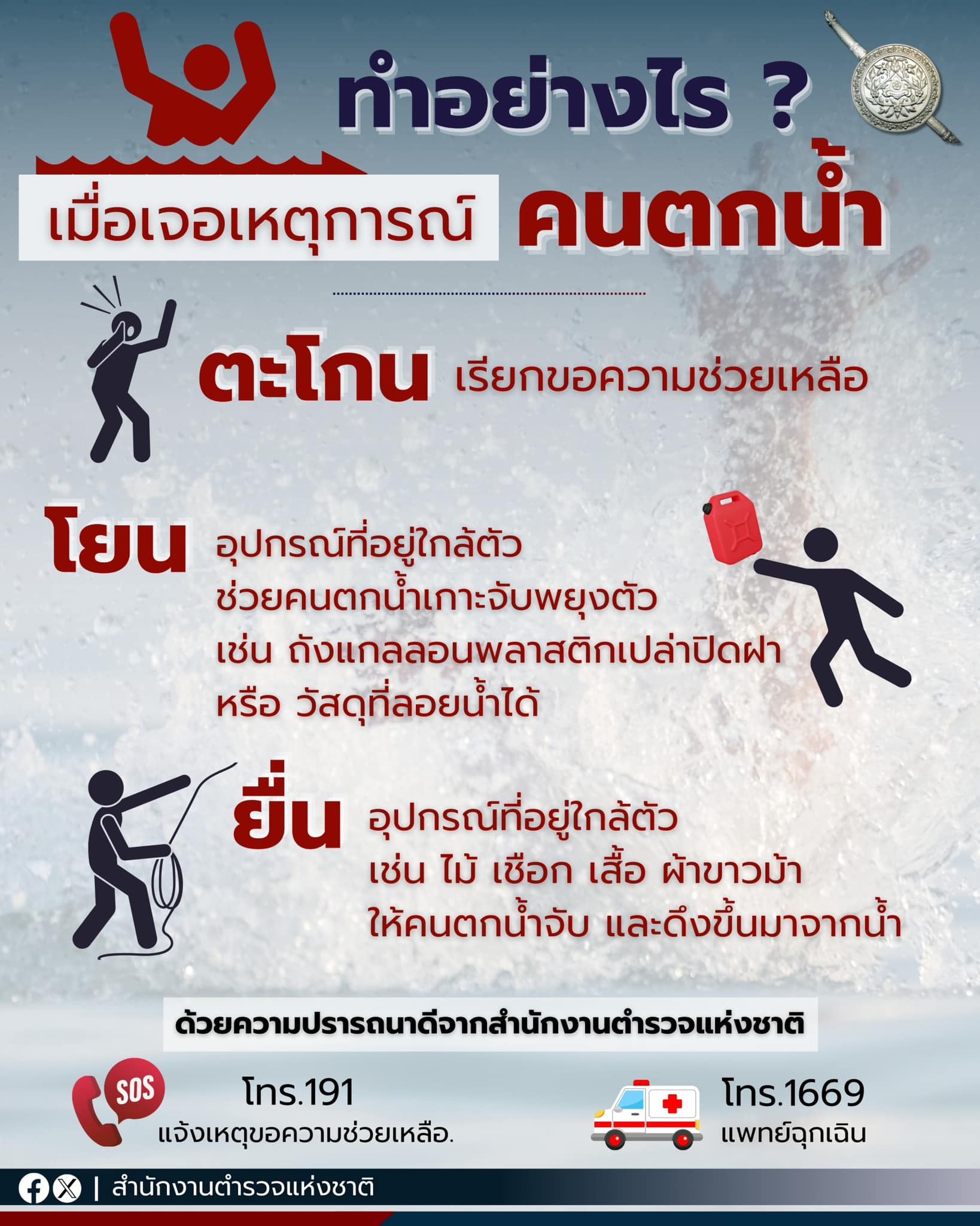 สำนักงานตำรวจแห่งชาติ แนะนำ 3 วิธีช่วยเหลือ เมื่อเจอเหตุการณ์คนตกน้ำ