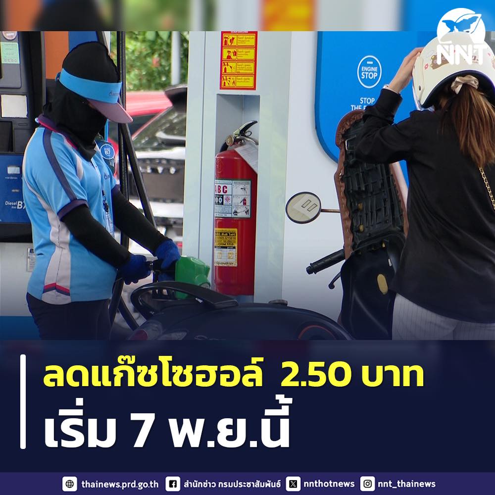 ครม. เห็นชอบลดราคาน้ำมันเบนซินแก๊สโซฮอล์ 91 ลงในอัตรา 2.50 บาทต่อลิตร เริ่มวันที่ 7 พ.ย.2566