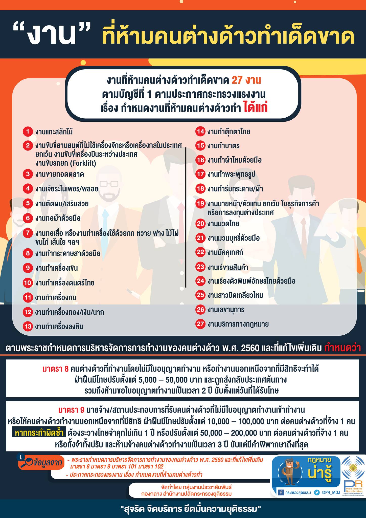 กระทรวงยุติธรรม เตือนงานที่ห้ามคนต่างด้าวทำเด็ดขาด 27 งาน
