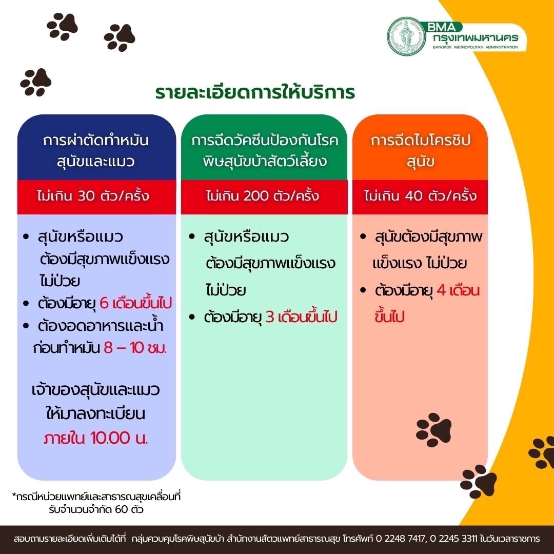 สำนักอนามัย ชวนฉีดวัคซีนป้องกันโรคพิษสุนัขบ้า ฉีดไมโครชิปสุนัขและทำหมันสุนัขและแมว โดยหน่วยสัตวแพทย์เคลื่อนที่