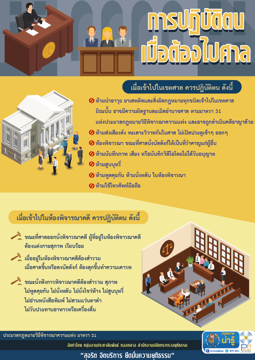 กระทรวงยุติธรรม แนะนำข้อควรรู้ การปฏิบัติตนเมื่อต้องไปศาล