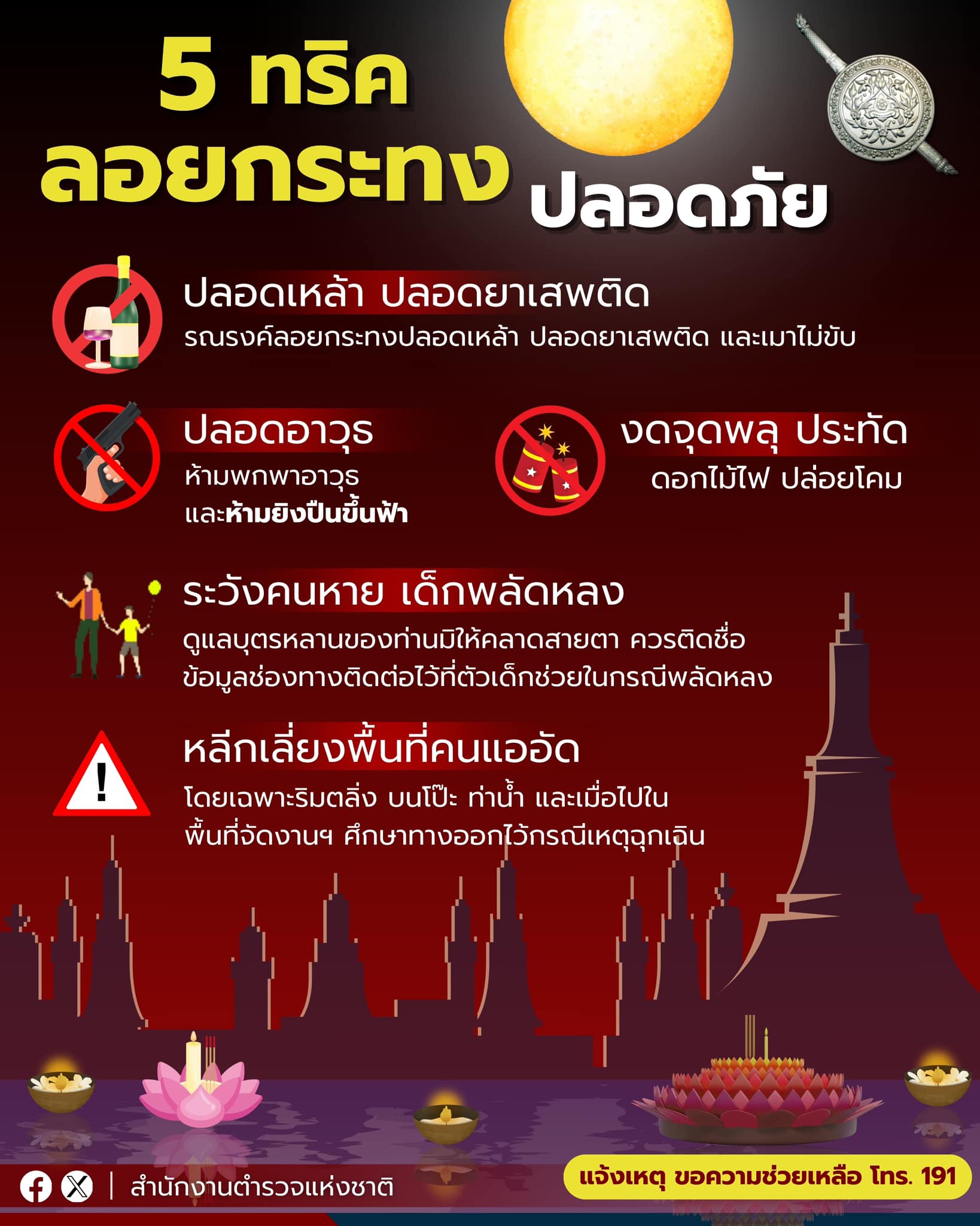 สำนักงานตำรวจแห่งชาติ แนะนำ 5 ทริค ทำกิจกรรมสืบสานประเพณีลอยกระทงอย่างปลอดภัย