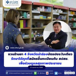 สภาเภสัชกรรม ชวนร้านยา 4 จังหวัดนำร่องบัตรปชช.ใบเดียวรักษาได้ทุกที่ สมัครขึ้นทะเบียนกับ สปสช.