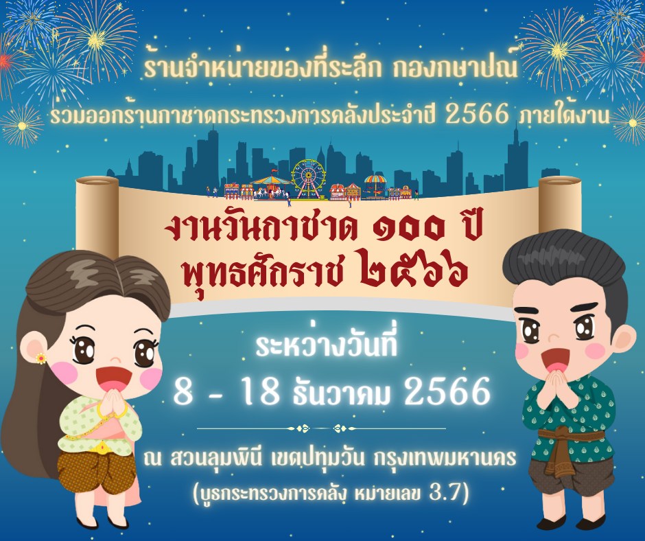 กองกษาปณ์ ร่วมออกร้านจำหน่ายสินค้าภายในงานกาชาด ประจำปี 2566 วันที่ 8 – 18 ธันวาคม 2566 ณ สวนลุมพินี เขตปทุมวัน กรุงเทพมหานคร (หมายเลข 3.7)