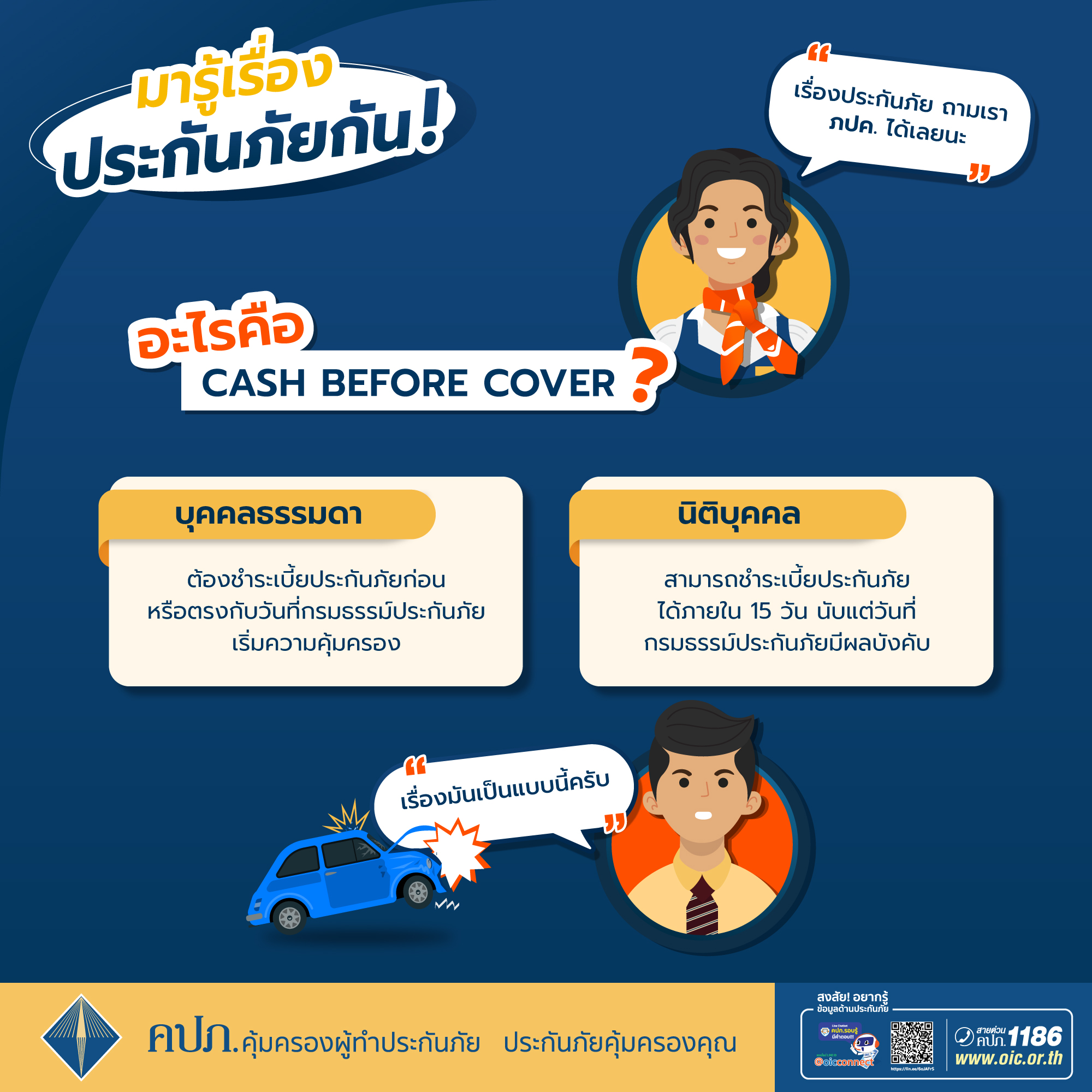 คปภ. แนะนำความรู้เรื่องประกันภัยเบื้องต้นเกี่ยวกับคำว่า Cash Before Cover