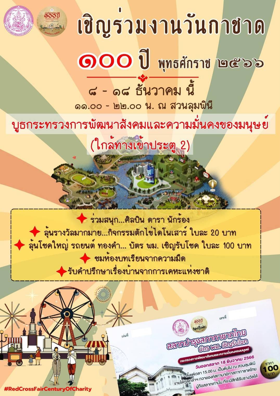 กระทรวงการพัฒนาสังคมและความมั่นคงของมนุษย์ เชิญเที่ยวงานกาชาด 100 ปี พุทธศักราช 2566