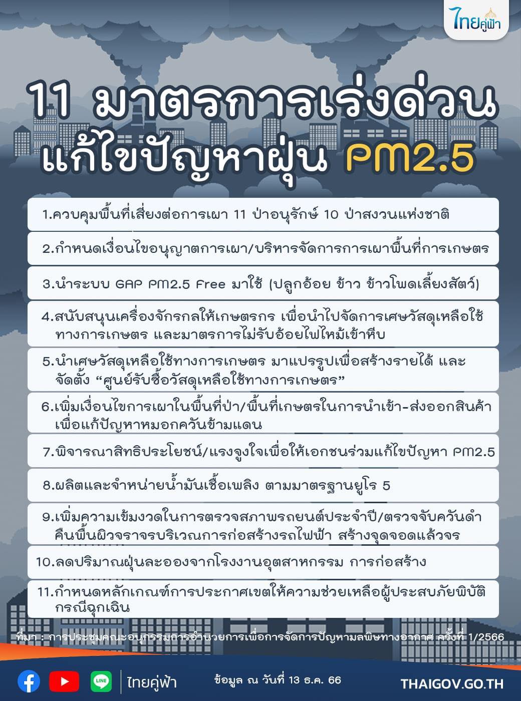 กระทรวงทรัพยากรธรรมชาติและสิ่งแวดล้อม เปิดเผย 11 มาตรการเร่งด่วนแก้ไขปัญหาฝุ่น PM2.5