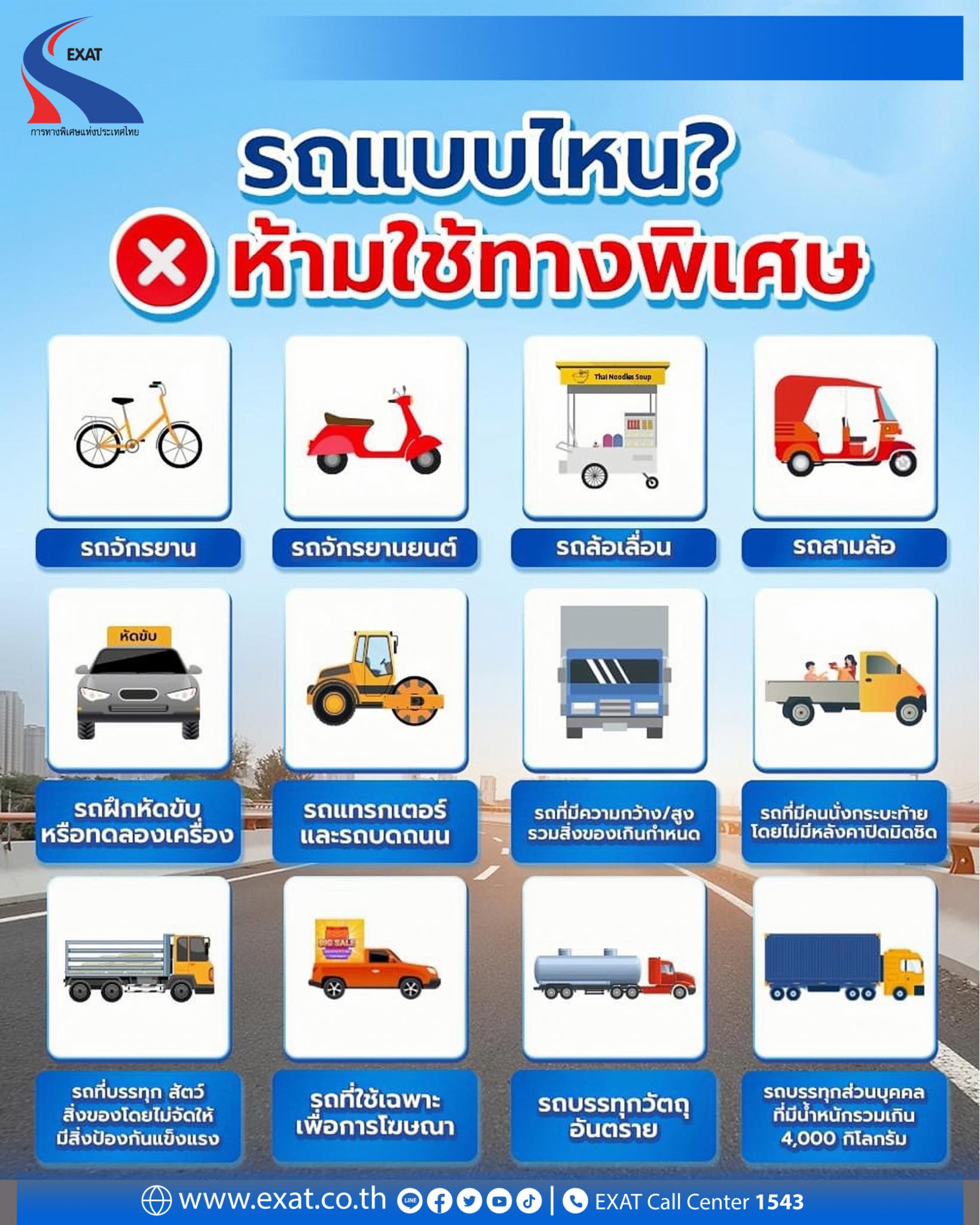 การทางพิเศษแห่งประเทศไทย แนะนำรถแบบไหนห้ามขึ้นใช้ทางพิเศษ