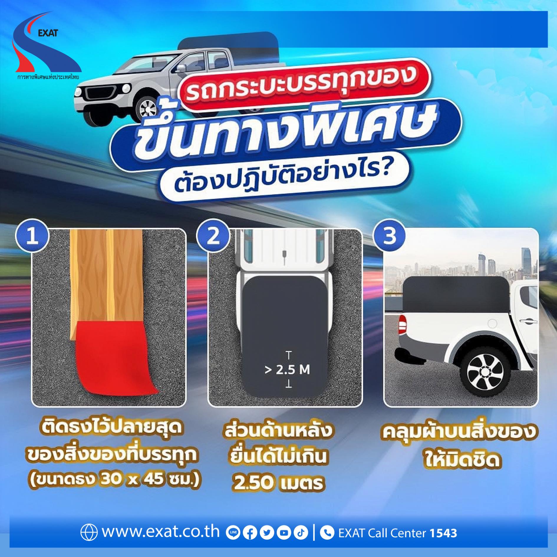 หากท่านผู้ใช้ทางต้องการบรรทุกสิ่งของขึ้นทางพิเศษ ต้องปฏิบัติตามที่กฎหมายกำหนด และผูกมัดให้เรียบร้อยปลอดภัย