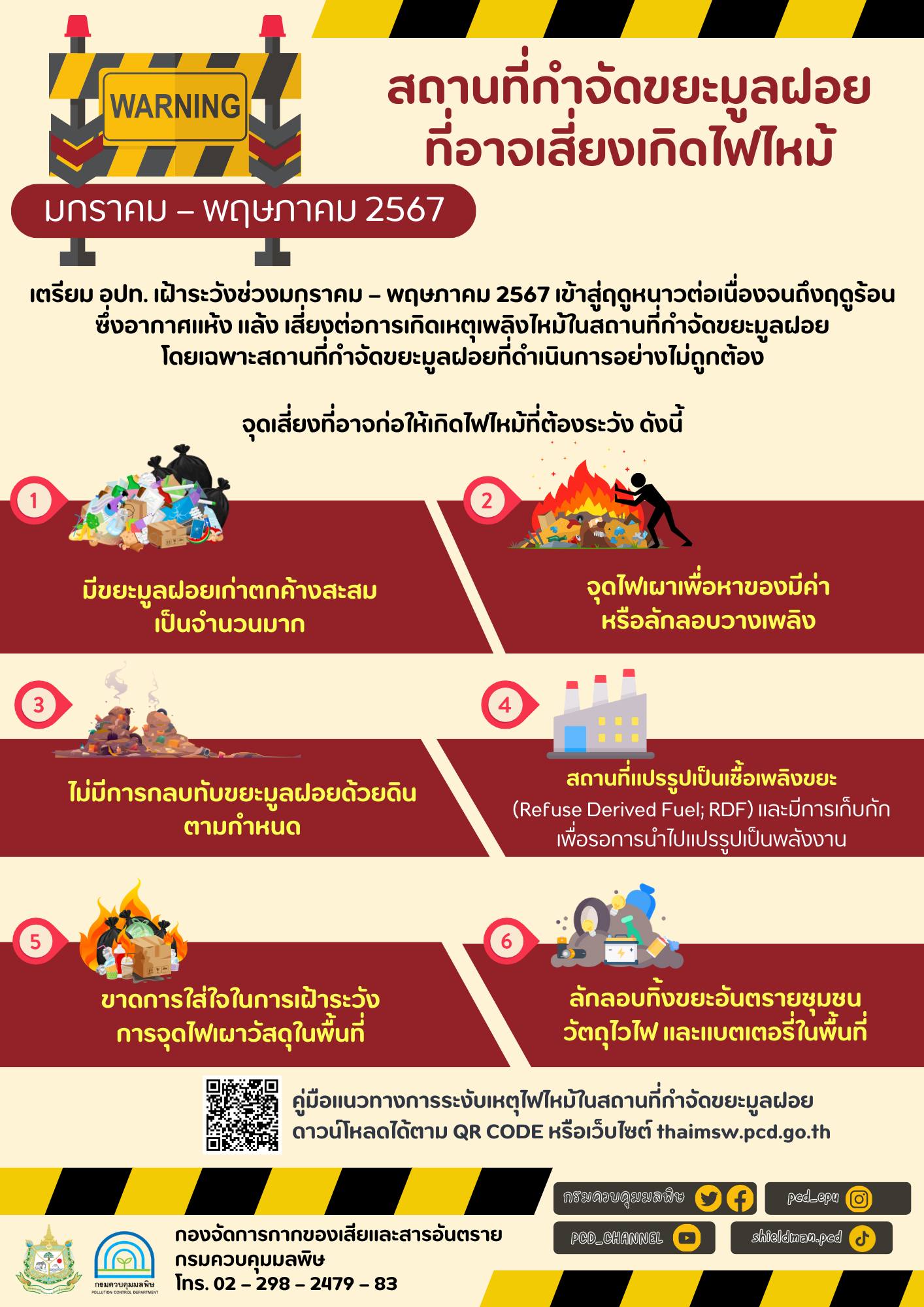 กรมควบคุมมลพิษ เตือนสถานที่กำจัดขยะมูลฝอยที่อาจเสี่ยงเกิดไฟไหม้