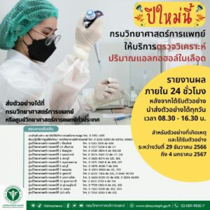 กรมวิทย์ฯ ให้บริการ “ตรวจแอลกอฮอล์ในเลือด” สนับสนุนป้องกันเกิดอุบัติเหตุช่วงเทศกาลปีใหม่