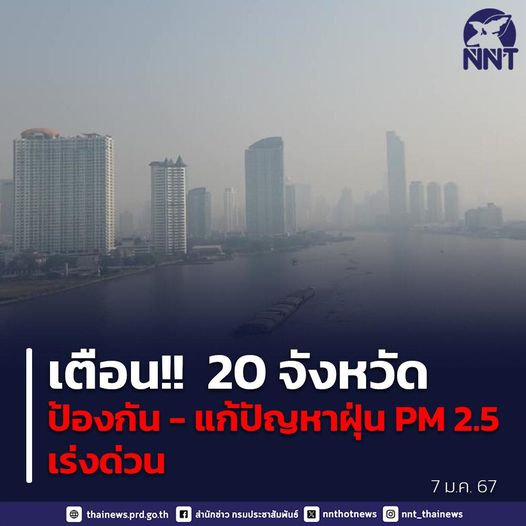 กรมควบคุมมลพิษ แจ้งเตือน 20 จังหวัดที่ต้องดำเนินการตามมาตรการป้องกัน- แก้ไขปัญหาฝุ่น PM 2.5 อย่างเร่งด่วน ได้แก่
