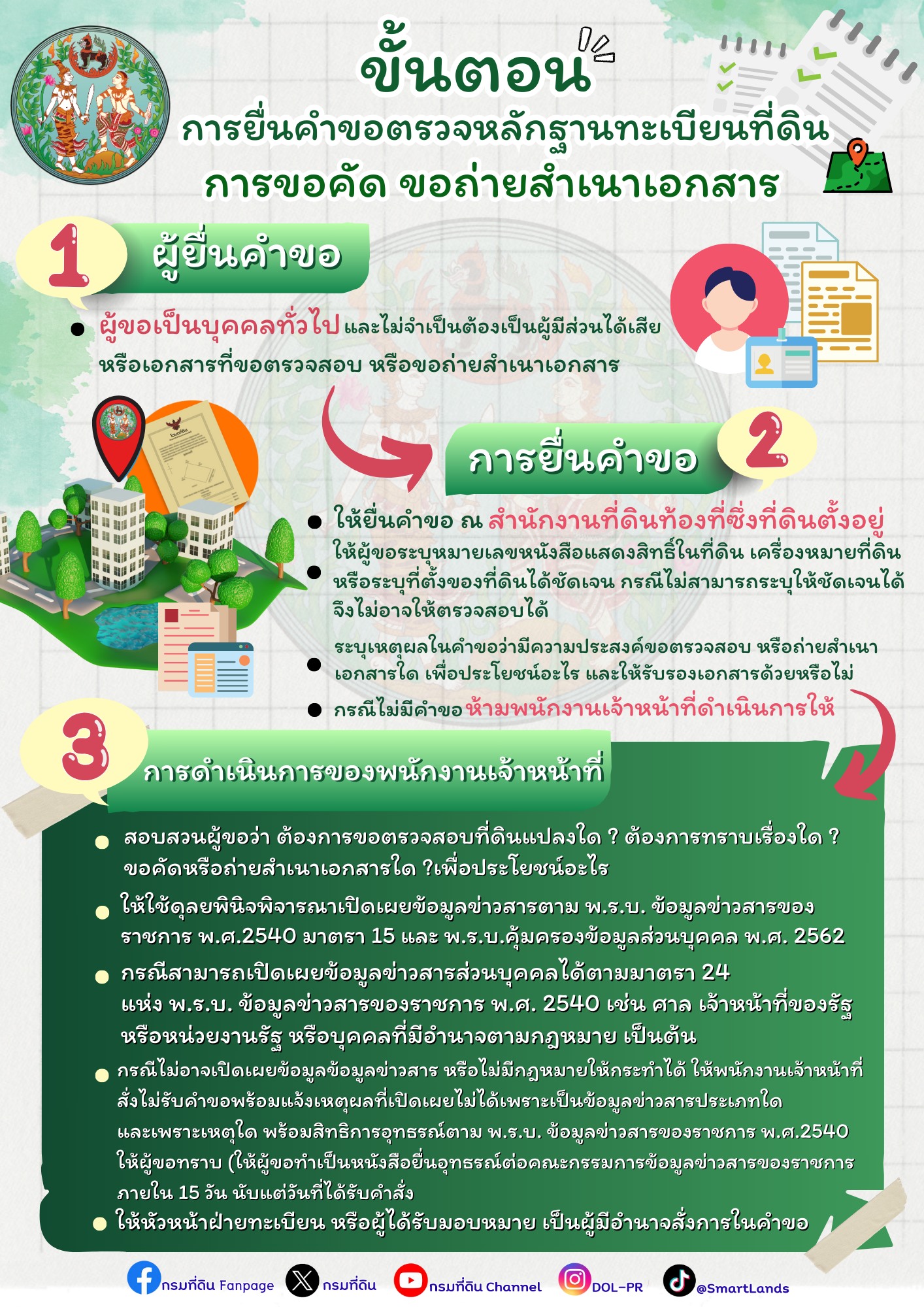 กรมที่ดิน แนะนำรายละเอียดและขั้นตอน การยื่นคำขอตรวจหลักฐานทะเบียนที่ดิน ขอคัด ขอถ่ายสำเนาเอกสาร