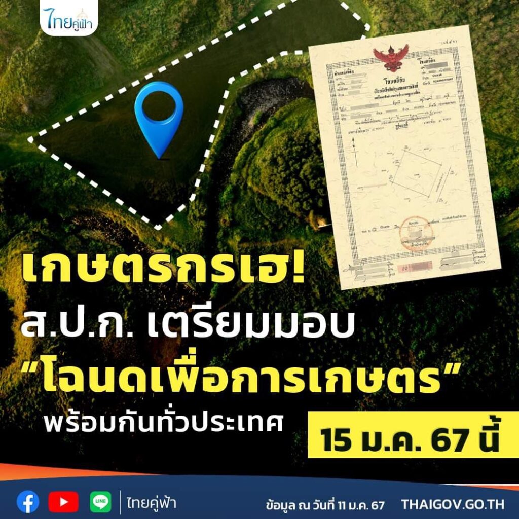ส.ป.ก. เตรียมมอบ “โฉนดเพื่อการเกษตร” พร้อมกันทั่วประเทศ 15 ม.ค. 67