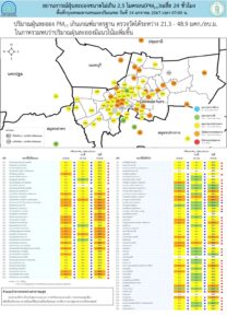 • ภาพรวมปริมาณ PM2.5 ในประเทศพบเกินค่ามาตรฐานใน 26 จังหวัด ได้แก่