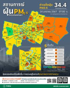 กรุงเทพมหานคร รายงานสถานการณ์ฝุ่นละออง PM 2.5 วันที่ 14 มกราคม 2567