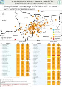 - ภาพรวมปริมาณ PM2.5 ในประเทศพบเกินค่ามาตรฐานใน 27 จังหวัด ได้แก่