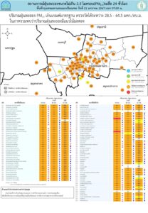 - ภาพรวมปริมาณ PM2.5 ในประเทศพบเกินค่ามาตรฐานใน 35 จังหวัด ได้แก่