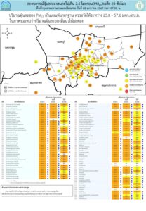 • กรุงเทพมหานครและปริมณฑล เกินค่ามาตรฐาน 41 พื้นที่ ตรวจวัดได้ 25.8 – 57.6 ไมโครกรัมต่อลูกบาศก์เมตร