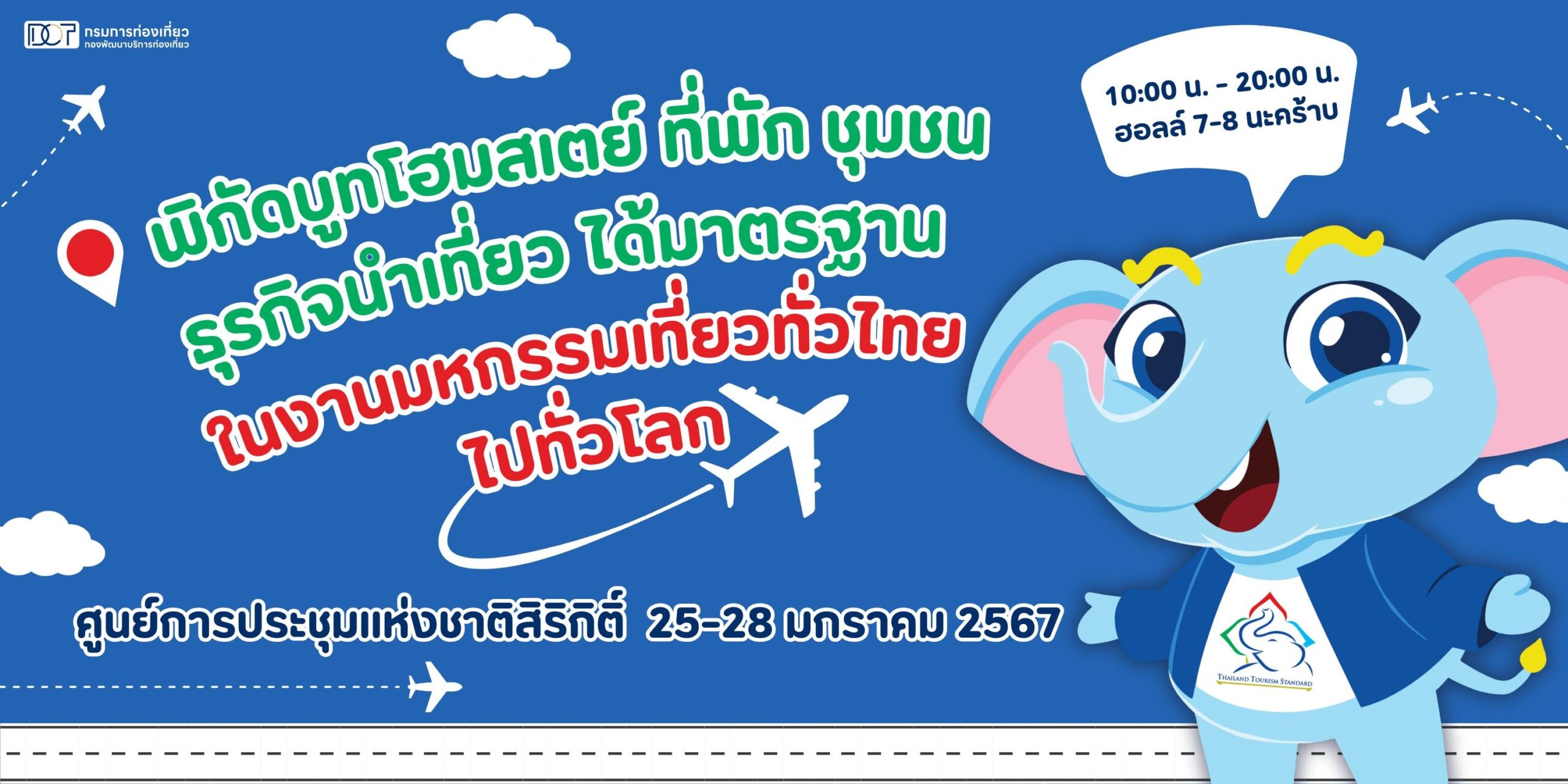 กรมการท่องเที่ยว เชิญชวนเที่ยวงานมหกรรมเที่ยวทั่วไทย ไปทั่วโลก ครั้งที่ 29 วันที่ 25-28 มกราคม 2567 เวลา 10.00 น. – 20.00 น. ณ ศูนย์การประชุมแห่งชาติสิริกิติ์ ฮอลล์ 7 – 8