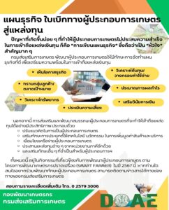 - เพื่อพัฒนาผู้ประกอบการเกษตรให้มีทักษะการจัดทำแผนธุรกิจที่ดี